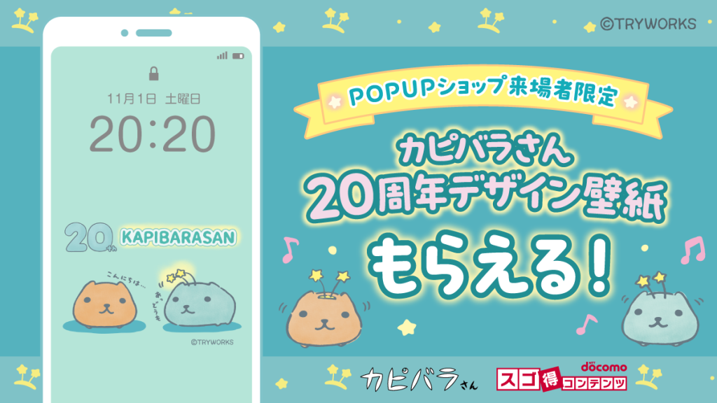 「カピバラさん forスゴ得」でも20周年デザインの壁紙を配信中!